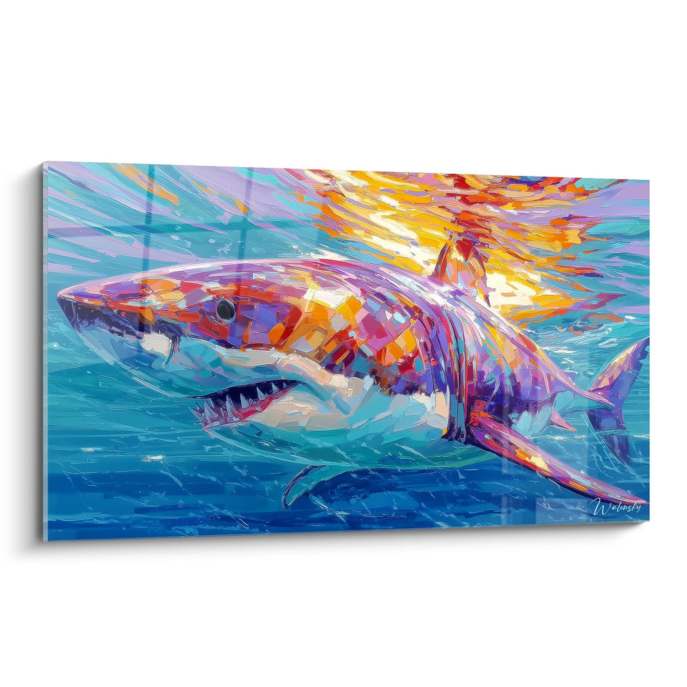 Tags : requin coloré, mégalodon artistique, tableau marin moderne, art aquatique, décoration océan, peinture prédateur, art contemporain requin