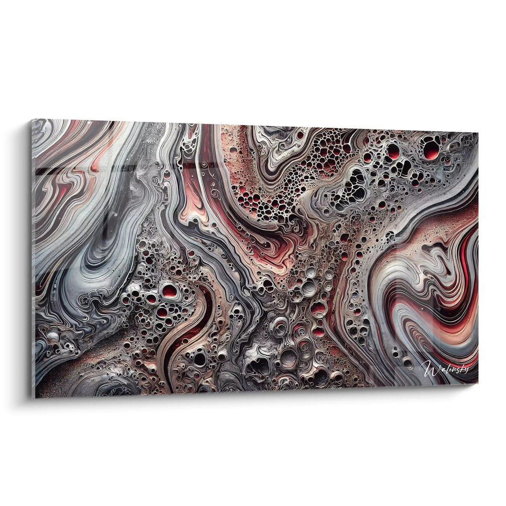 L’alliance des rouges ardents aux noirs et gris profonds crée un contraste saisissant et dramatique. Ce jeu de couleurs instille dans votre espace une ambiance à la fois énigmatique et envoûtante, où chaque regard plonge dans un chaos ordonné, une danse entre force brute et délicatesse fractale. Ce tableau ne se contente pas de décorer, il capture l’attention et l’imagination, vous invitant à ressentir l’énergie vitale qui pulse sous sa surface.