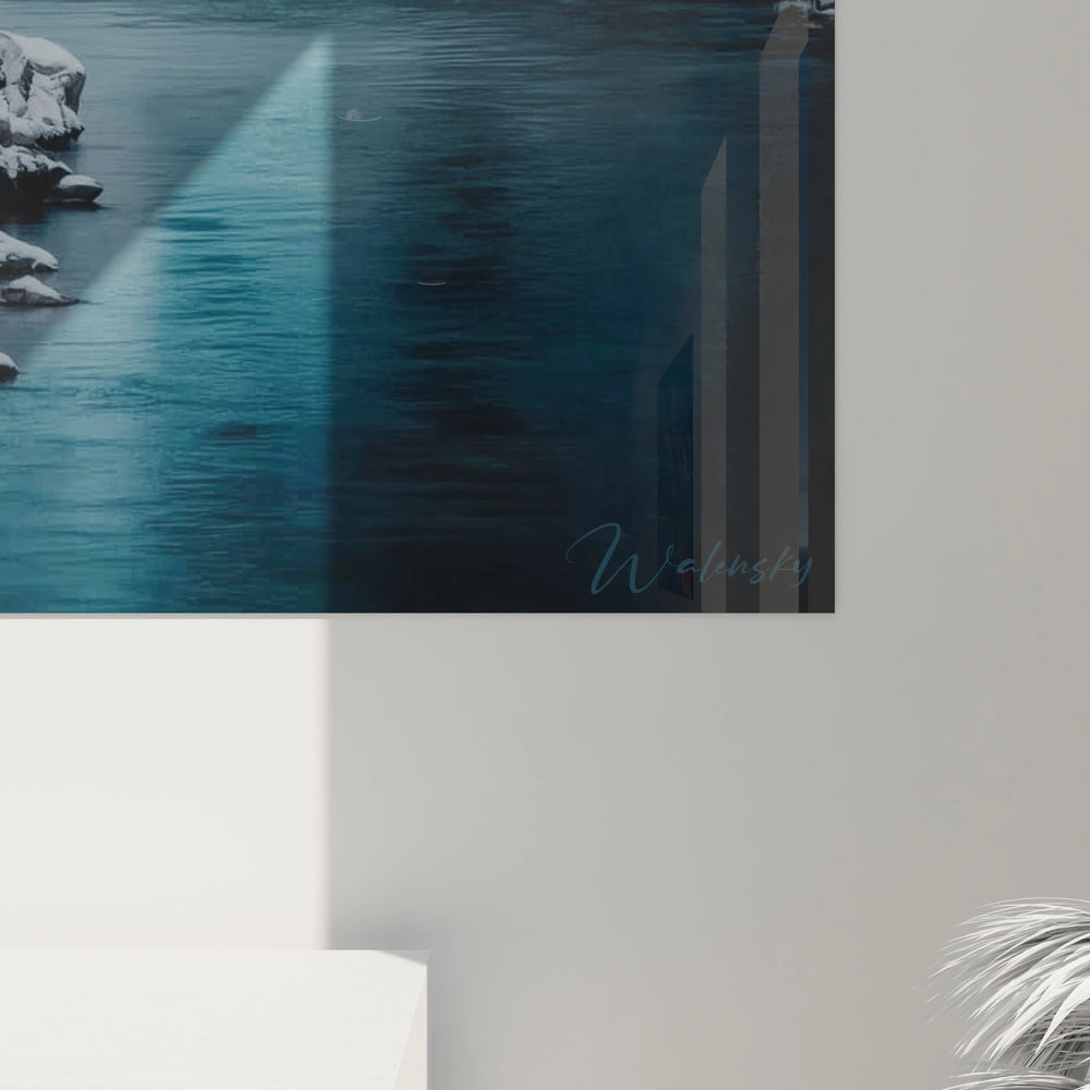 Cette décoration murale salon moderne s'intégrera parfaitement dans des environnements aux tons neutres qui complémenteront ses nuances froides naturelles. L'éclairage recommandé consiste en une lumière douce et indirecte qui mettra en valeur les subtilités chromatiques sans créer de reflets gênants sur la surface. Les combinaisons de couleurs complémentaires incluent des tons beiges, crème ou gris chaud qui contrasteront harmonieusement avec les teintes froides de l'œuvre. Ce tableau rivière décoration intérieure trouvera sa place idéale dans un salon spacieux, une chambre principale ou un bureau, où son effet apaisant pourra être pleinement apprécié. L'ambiance sereine qu'il dégage en fait un choix parfait pour des espaces dédiés à la détente et à la contemplation.