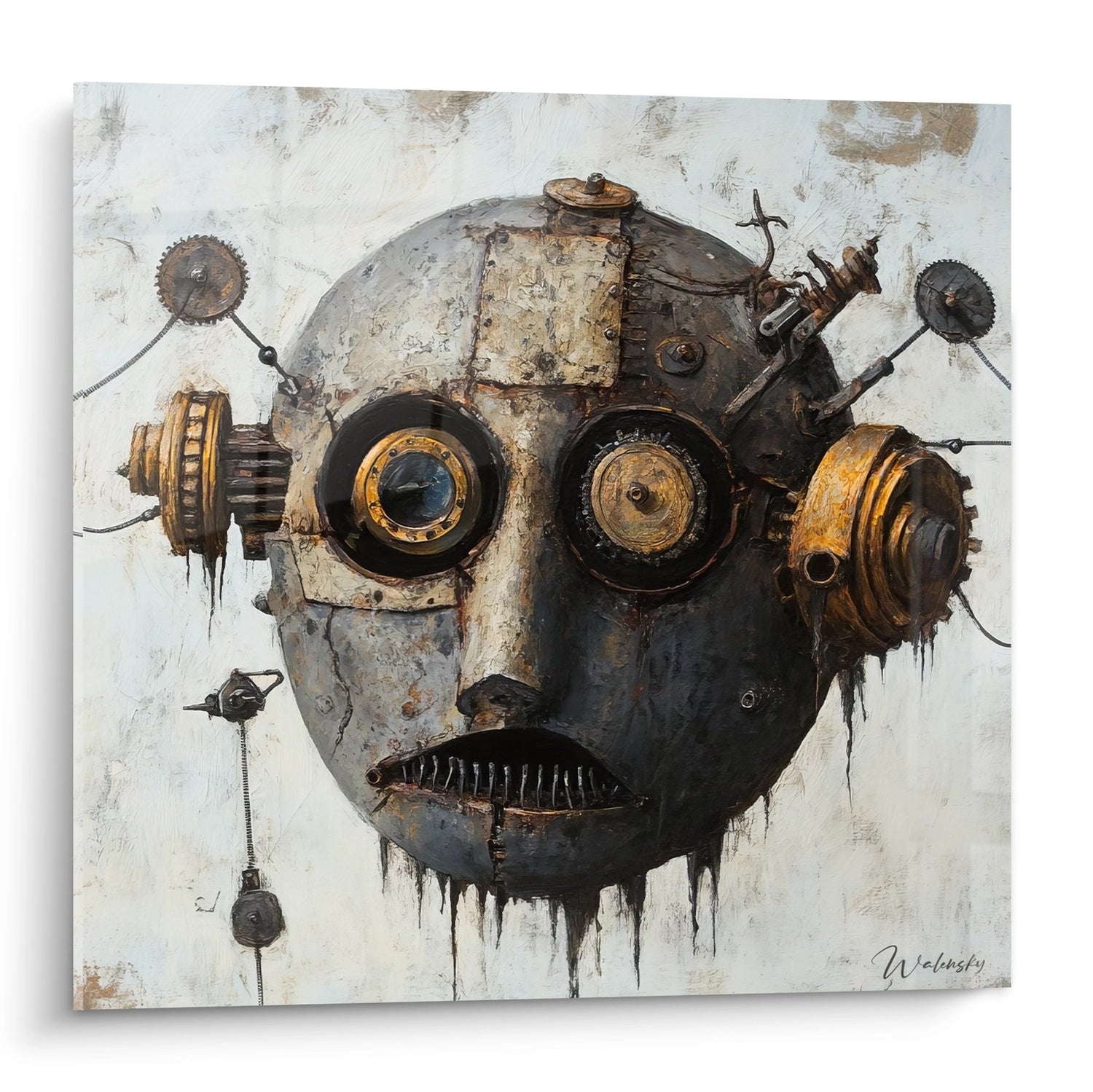 Tableau robot steampunk - Visage mécanique aux engrenages dorés - édition machines et engrenages