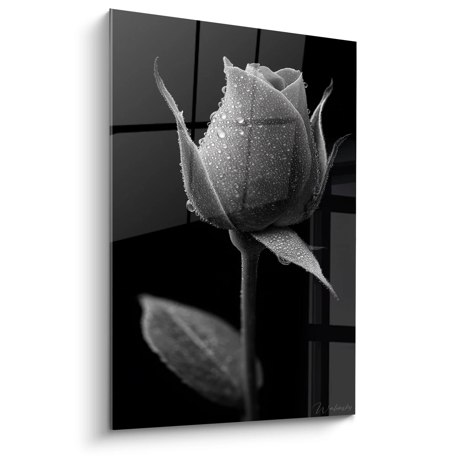 Tableau Rose aux Gouttes de Rosée - Beauté Matinale - Edition paysage noir et blanc