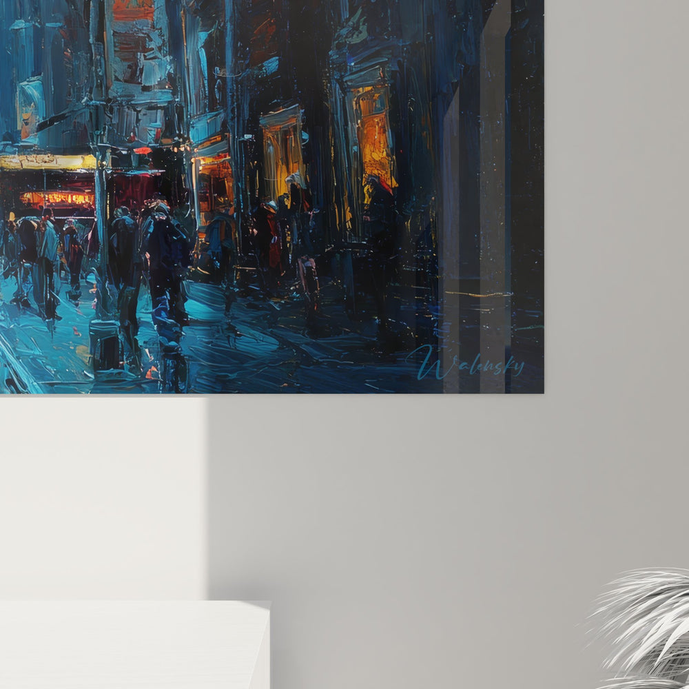 Ajoutez dès maintenant le Tableau Rue New-Yorkaise sous la Pluie à votre collection. Transformez votre espace de vie avec cette œuvre captivante qui évoque des souvenirs de balades parisiennes sous les étoiles. Ne tardez pas, car chaque pièce est unique et en quantité limitée. Commandez le vôtre dès aujourd'hui !
