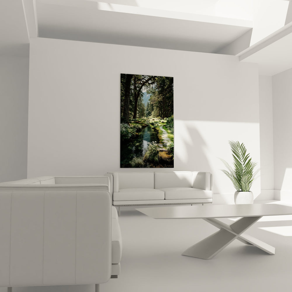 Tags : ruisseau forestier, décoration nature, tableau forêt, art mural paysage, ambiance zen