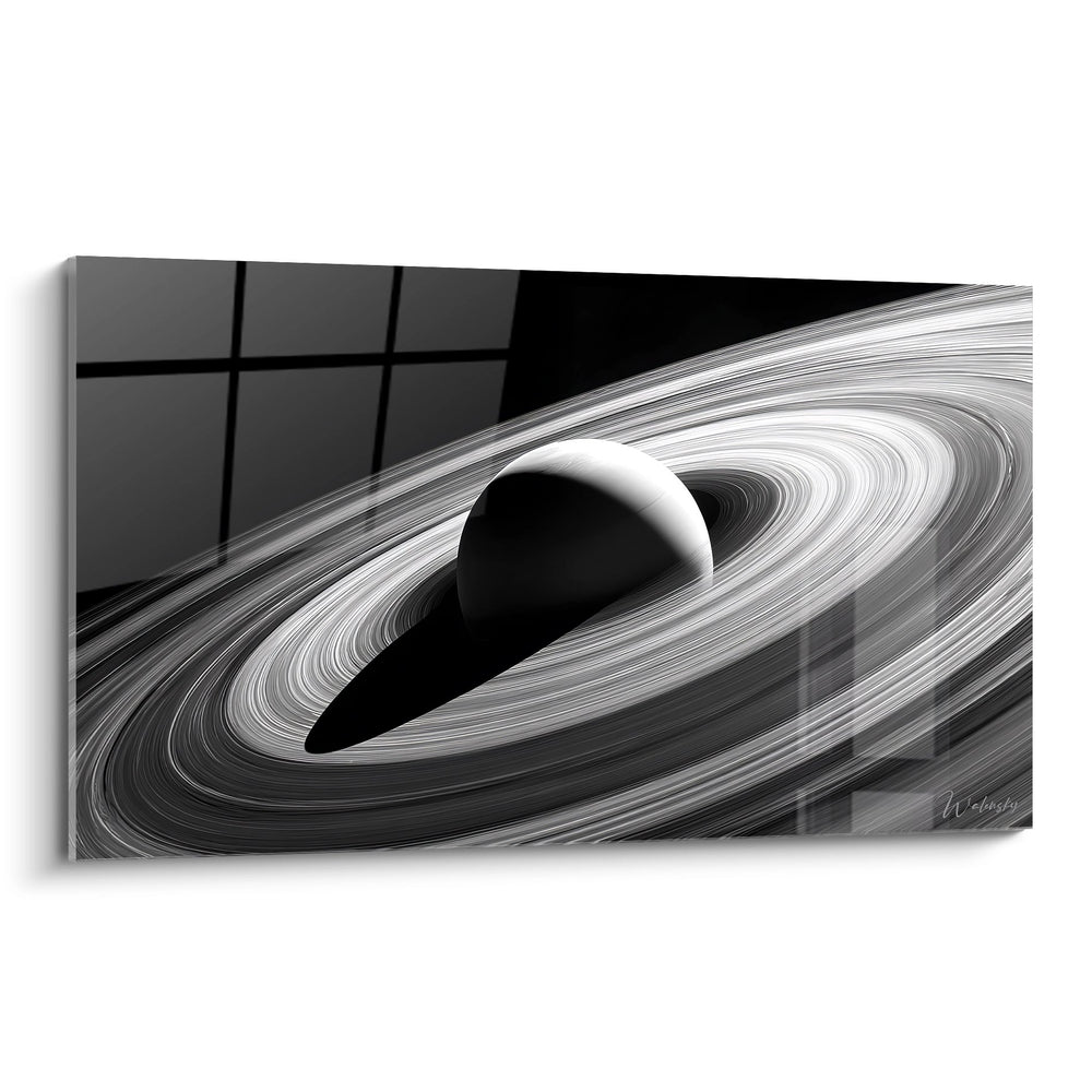Tags : tableau saturne, art spatial, décoration astronomique, anneaux planétaires, cosmos noir blanc