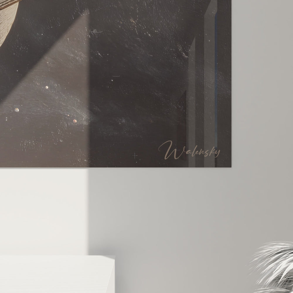 Imaginez-vous admirer ce tableau qui évoque l'immensité et la splendeur des cieux. Ses nuances dorées et ses détails raffinés apportent une chaleur et une élégance inégalées à votre pièce. La lumière reflétée par les anneaux de Saturne crée une ambiance apaisante, transformant votre espace en un sanctuaire de paix et d'inspiration.