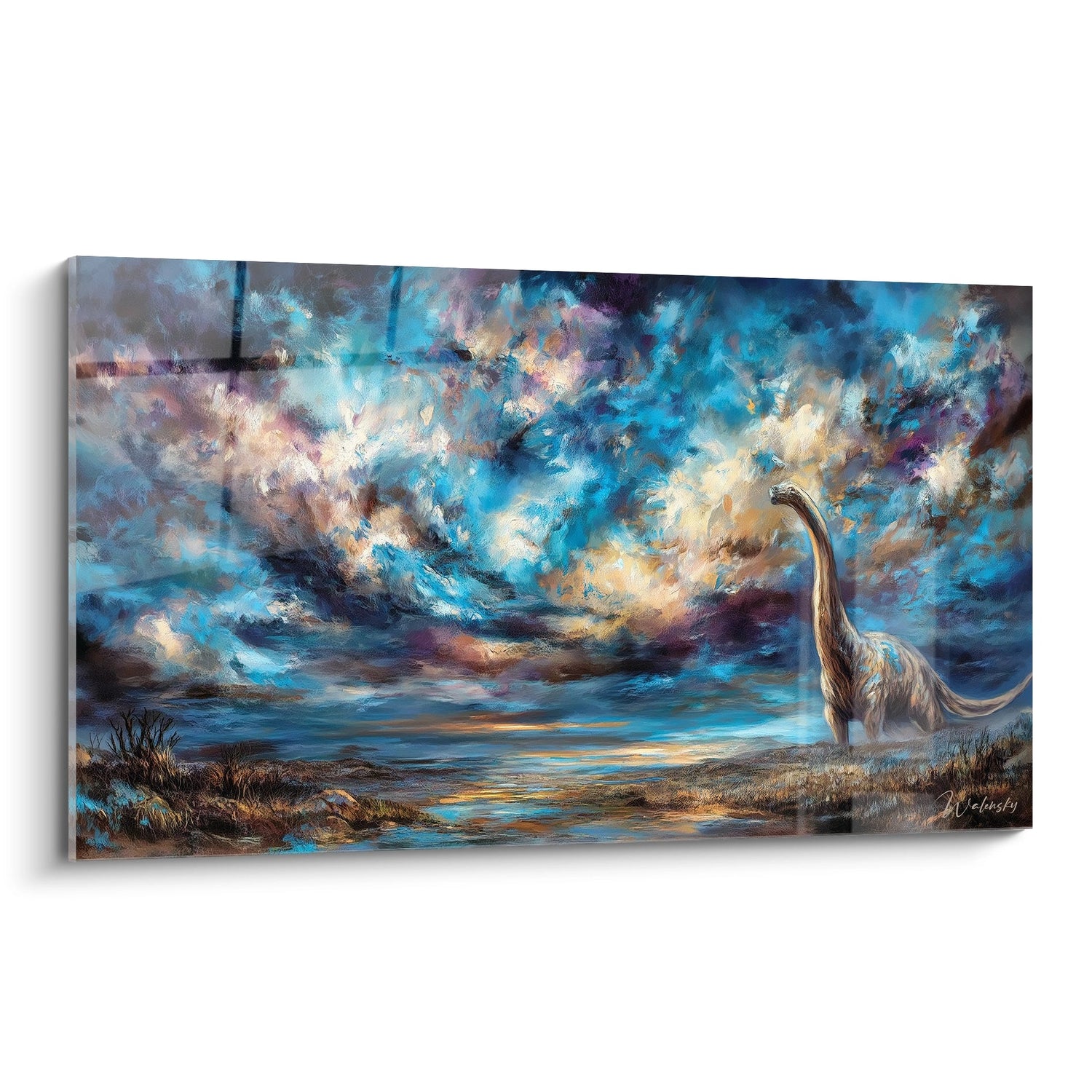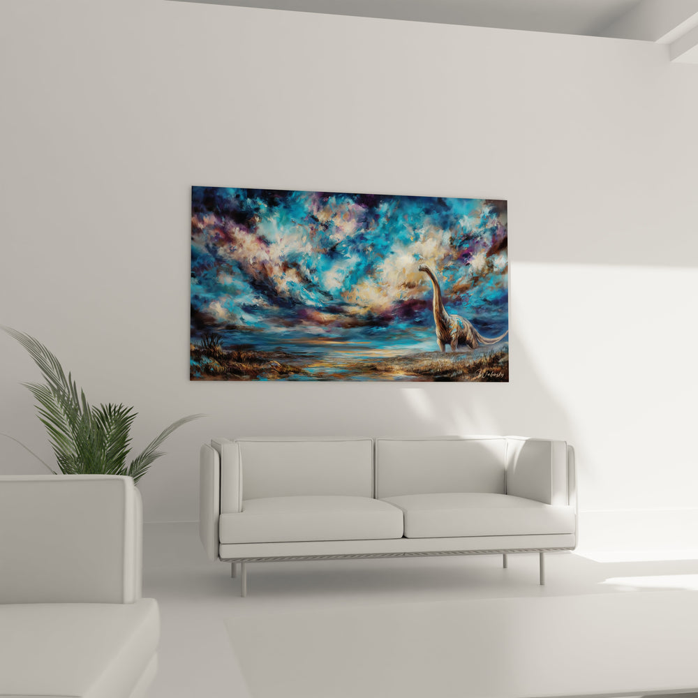 Tags : tableau dinosaure, sauropode, art préhistorique, décoration dinosaure, toile dinosaure