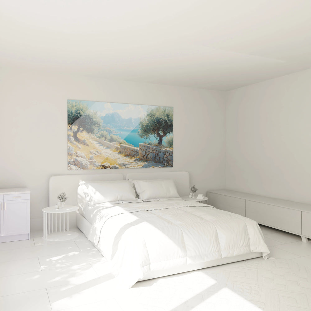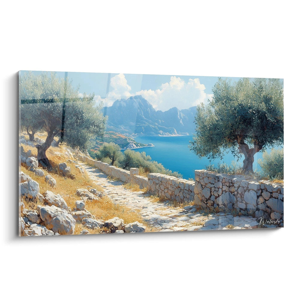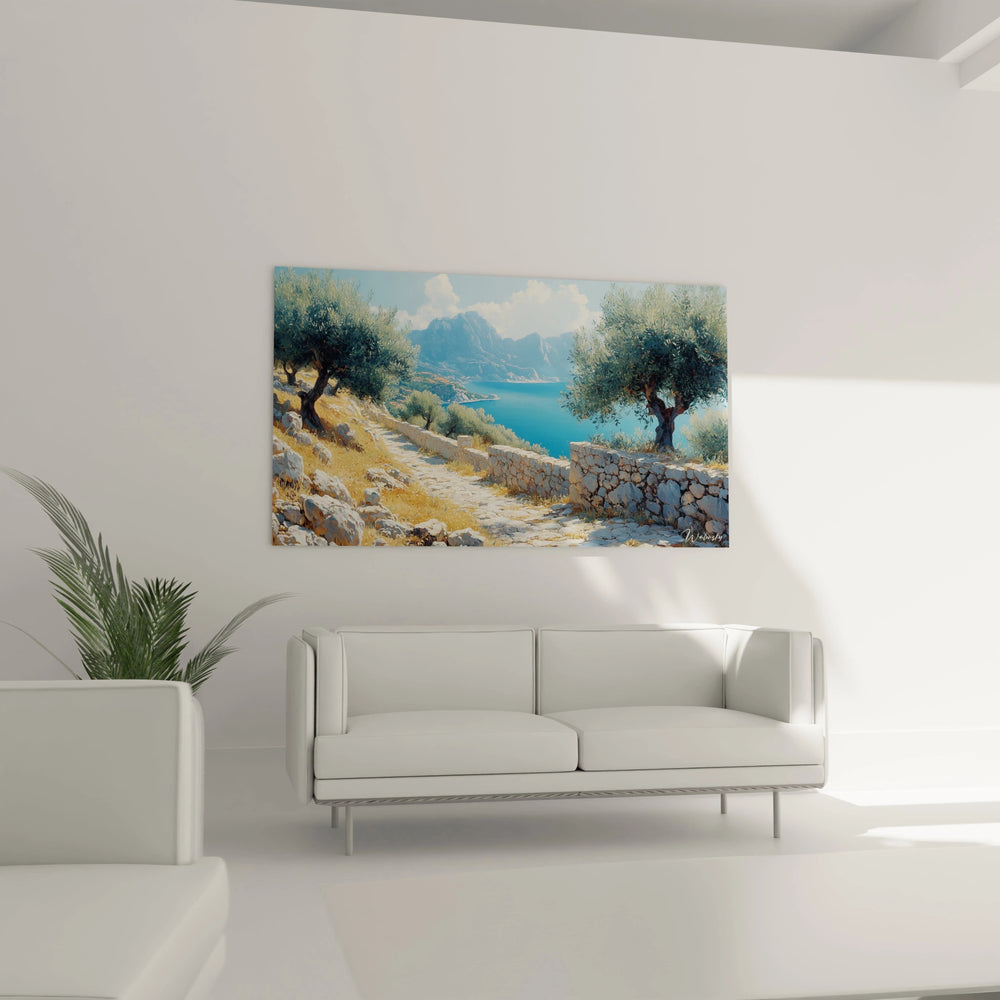 Imaginez un instant marcher lentement sur un sentier bordé d’oliviers argentés, où la douce brise marine caresse votre peau et la lumière dorée du soleil sublime chaque détail du paysage. Le Tableau Sentier d'Olivier - édition paysage vous transporte dans ce voyage sensoriel unique, offrant à votre intérieur une fenêtre immersive sur la Méditerranée, entre terre et mer.
