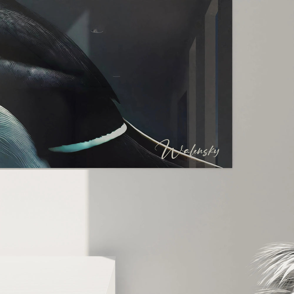 Avec son fond noir profond et ses nuances de gris délicates, ce tableau crée un contraste élégant qui met en lumière la silhouette raffinée du pingouin blanc et noir. La sobriété des couleurs amplifie l’intensité du regard de l’oiseau, vous invitant à un moment suspendu où le temps ralentit. Cette atmosphère minimaliste, presque méditative, apporte une vibration zen à votre pièce, idéale pour instaurer un climat de sérénité et de contemplation.