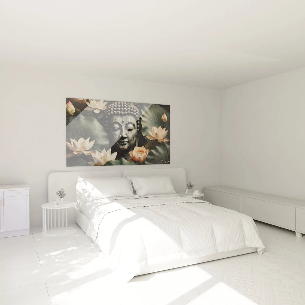 Ce tableau rend hommage à la sagesse bouddhiste en mêlant symboles sacrés et modernité esthétique. Le lotus, qui s’épanouit au cœur des eaux calmes, devient un mantra visuel, rappelant la force de la renaissance et de la pureté de l’esprit malgré les épreuves de la vie. Cette œuvre est pensée pour éveiller une présence apaisante dans votre décor et dans votre quotidien.