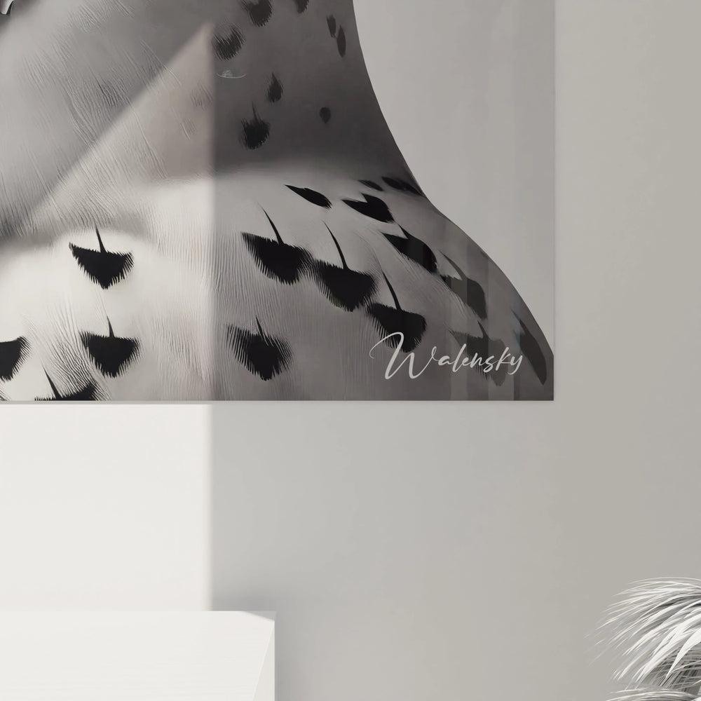 Imaginez vos journées enveloppées d’une atmosphère paisible, où chaque coup d’œil vers ce tableau devient une pause contemplative. La douceur immaculée des plumes se détache sur un fond minimaliste, accentuant la pureté et la sérénité qui émanent de cette silhouette noble. Ici, la simplicité sublime l’expression intense d’un oiseau posé, qui vous invite à une introspection calme et lumineuse.