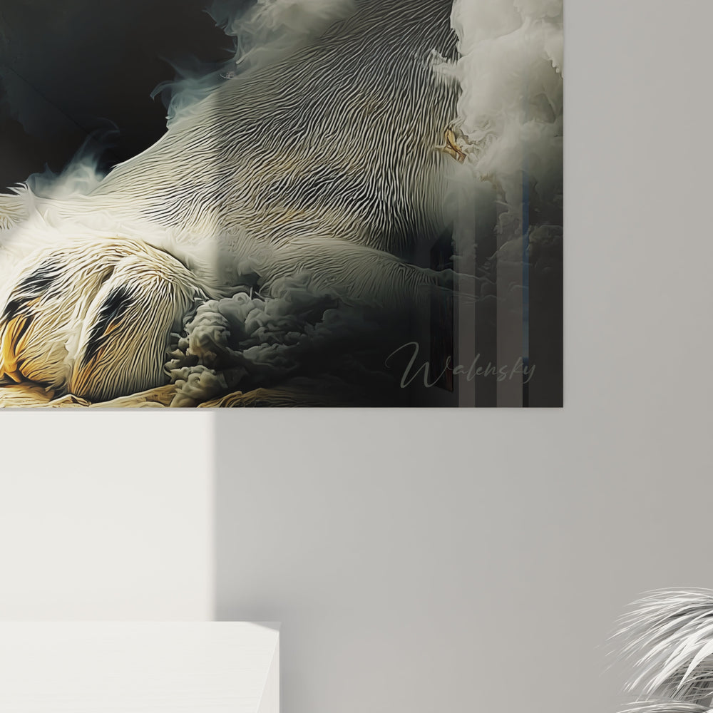 Chaque détail de ce tableau a été soigneusement sélectionné pour capturer l’essence primitive de cet animal préhistorique. Les nuances de gris et de bleu créent un contraste saisissant, tout en apportant une profondeur qui fait surgir le Smilodon du fond brumeux. C'est une invitation à explorer l’histoire de notre planète, tout en apportant une touche de luxe à votre domicile.