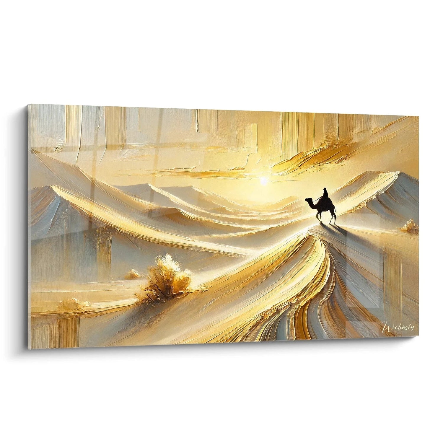 Ce tableau ne se contente pas de décorer votre espace, il invite à la méditation. L’ambiance apaisante créée par les teintes chaudes et délicates — or, beige et argent — diffuse une lumière douce qui semble prolonger le calme du désert jusque dans votre intérieur. Chaque regard porté sur cette scène suscite une sensation profonde d’évasion, l’impression d’un voyage intérieur où le silence de la nature vous permet de vous recentrer, loin du tumulte du quotidien.
