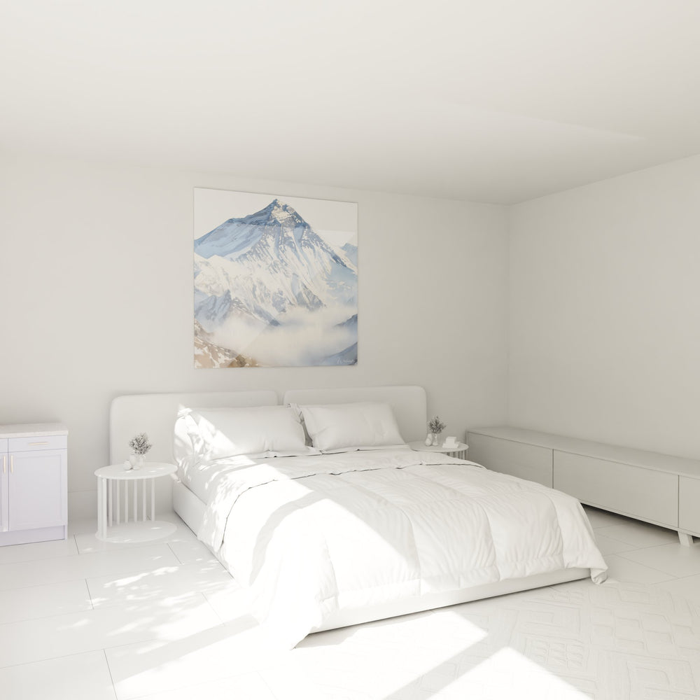 Imaginez-vous dans un chalet douillet, un chocolat chaud à la main, contemplant le paysage époustouflant qui s'étend devant vous. Ce tableau vous transporte instantanément vers des sommets majestueux, là où le calme règne et où la beauté naturelle s'exprime dans toute sa splendeur. Chaque détail de l'œuvre a été soigneusement pensé pour capturer la lumière des neiges éternelles et le majestueux spectacle des montagnes.