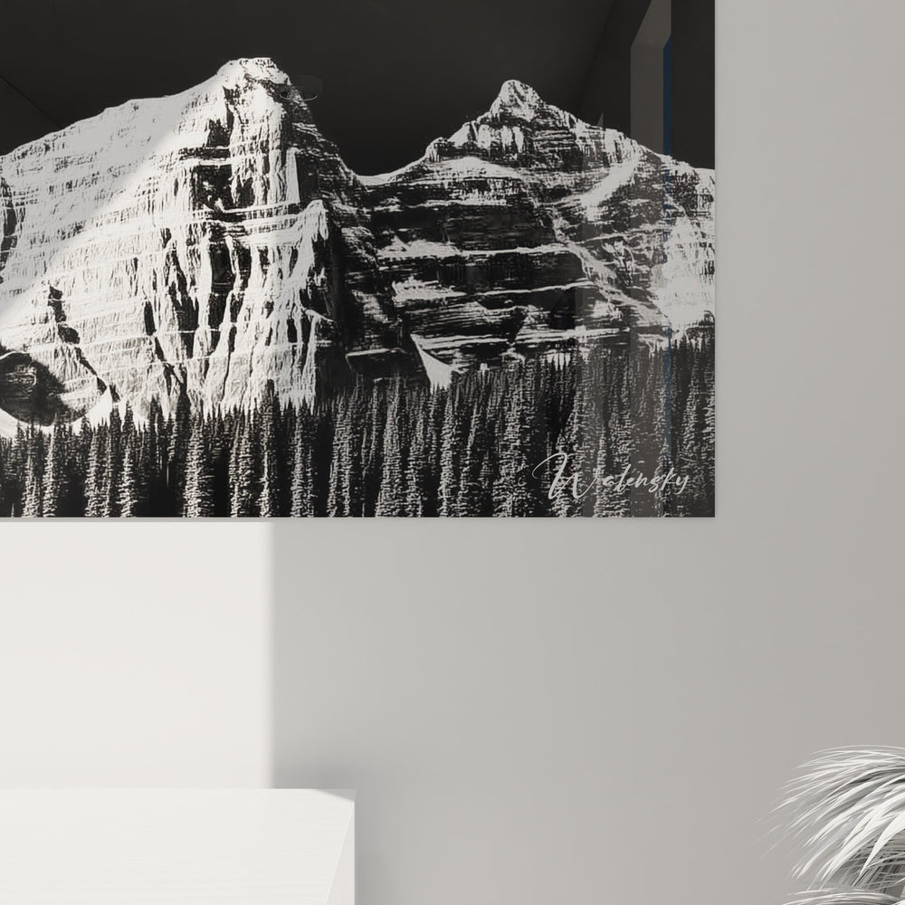 Tags : tableau montagne, sommets enneigés, photographie noir et blanc, décoration alpine, paysage montagnard