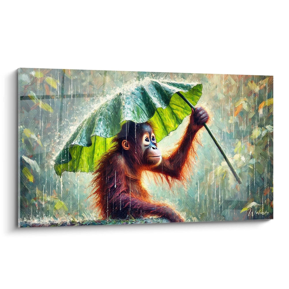 À travers ce tableau, vous ressentez la magie d’un instant fragile, où la vulnérabilité devient force. Le singe, protégé par sa feuille, symbolise cette capacité qu’a la nature — et par extension vous-même — à se protéger, s’adapter et trouver la lumière malgré les tempêtes. Chaque regard posé sur cette œuvre évoque un sentiment doux et profond d’espoir et d’harmonie, un véritable refuge pour l’âme.