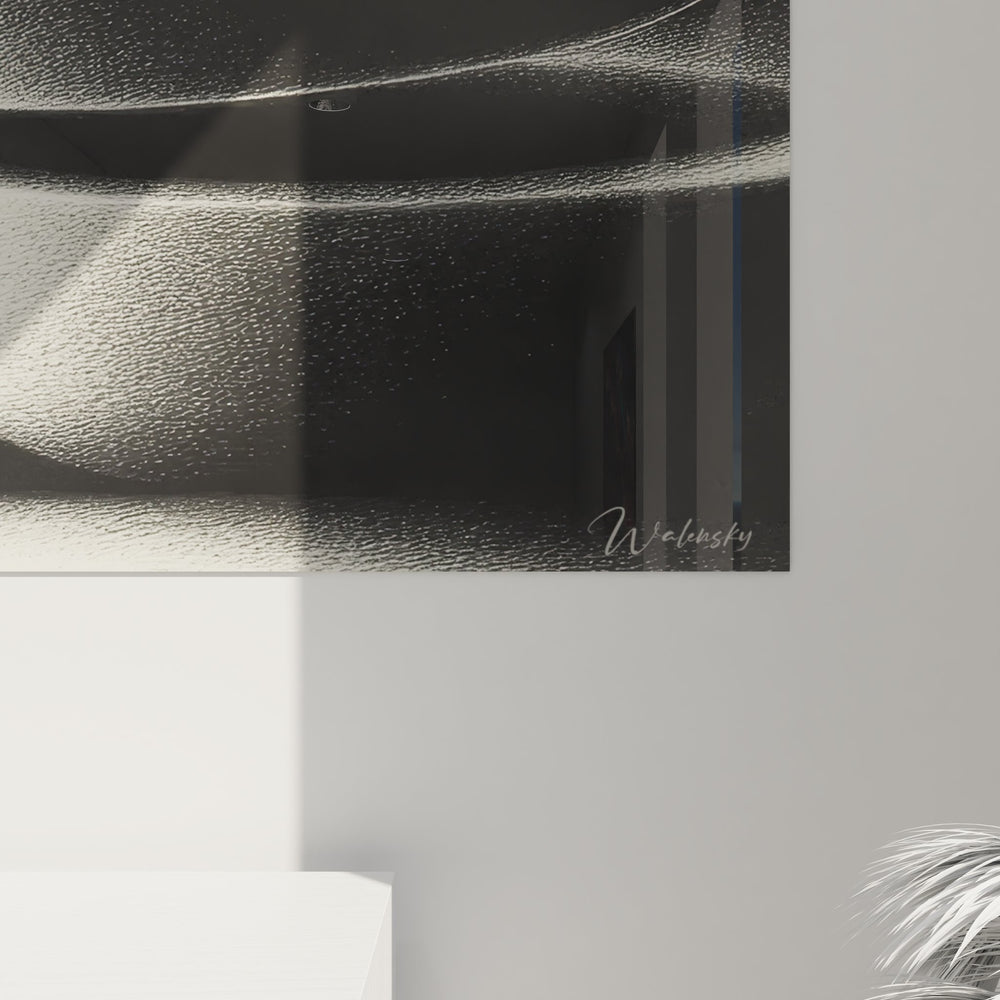 La palette monochrome de cette œuvre d'art abstraite explore les nuances subtiles entre le blanc et le noir, créant une harmonie visuelle apaisante. Cette composition minimaliste géométrique évoque la pureté et l'équilibre, symbolisant l'harmonie universelle et la perfection des formes naturelles. Les dégradés délicats suggèrent le mouvement perpétuel et la transformation constante de la matière dans l'espace.