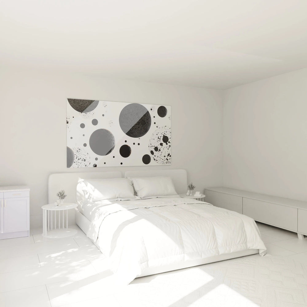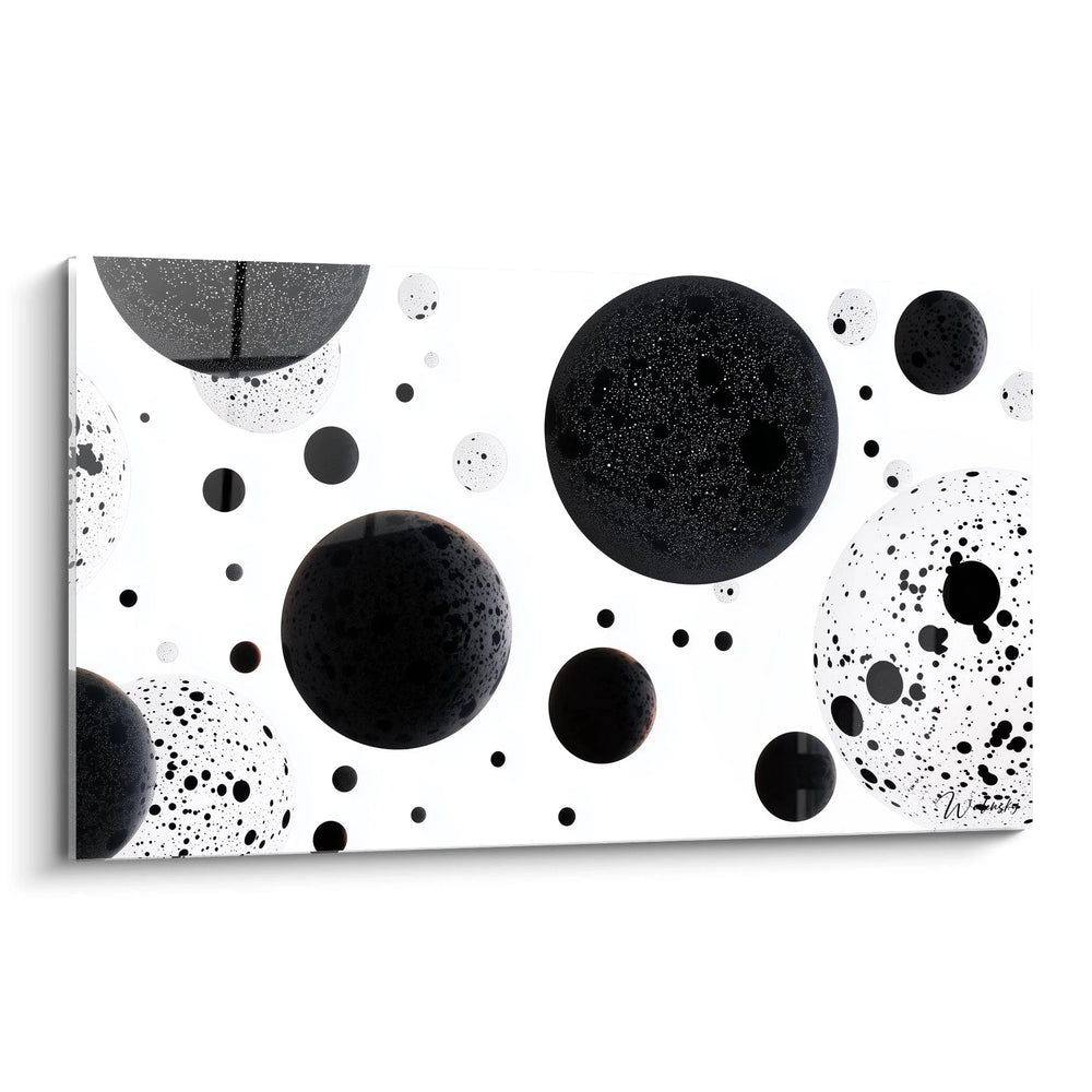 Le Tableau Sphères Volantes - édition tacheté noir et blanc est plus qu’un simple élément décoratif : c’est une invitation à l’évasion et à la contemplation, un reflet subtil de votre sensibilité esthétique.