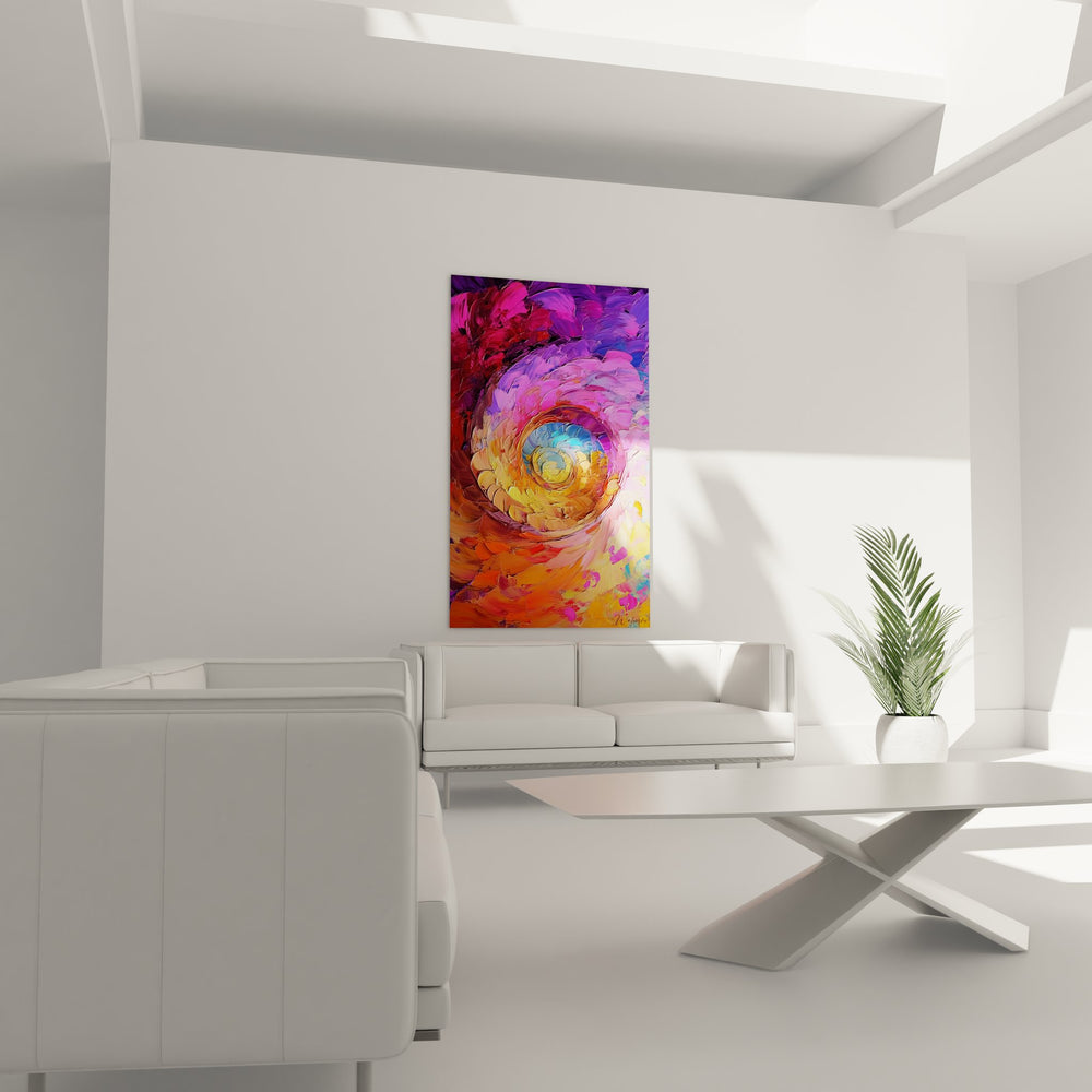 Tags : tableau spirale, art abstrait moderne, décoration murale colorée, peinture tourbillon, vortex artistique