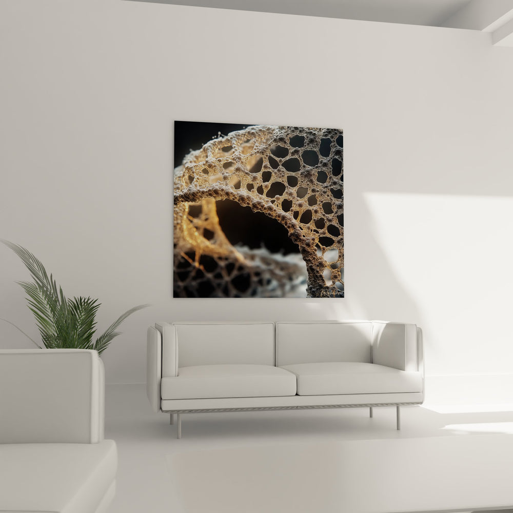 Ce tableau mural structure moléculaire présente une vision artistique saisissante de l'architecture de l'ADN, capturant la complexité fascinante de la double hélice ADN dans une composition moderne et élégante. L'œuvre révèle une structure alvéolaire dorée qui évoque parfaitement la représentation scientifique ADN, où chaque cavité hexagonale rappelle les bases nucléotidiques qui constituent notre patrimoine génétique. Cette décoration murale scientifique transforme un concept biologique complexe en une œuvre d'art contemporaine accessible et visuellement captivante. Les détails microscopiques sont magnifiés, révélant la beauté intrinsèque de la structure génétique artistique qui nous compose tous. L'éclairage subtil met en valeur les reliefs et les textures, créant un jeu d'ombres et de lumières qui donne vie à cette illustration ADN moderne. Ce tableau art scientifique s'adresse aux passionnés de biologie, aux professionnels de santé, mais aussi à tous ceux qui apprécient l'art conceptuel et la visualisation moléculaire décorative.