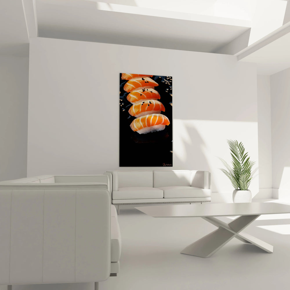 Ce tableau trouve sa place naturellement dans un intĂ©rieur moderne et Ă©purĂ©. Que ce soit dans une cuisine contemporaine, un salon chic au design minimaliste, ou mĂȘme un espace dĂ©diĂ© Ă la dĂ©gustation, il ajoute une touche gastronomique et esthĂ©tique inĂ©galĂ©e. Imaginez-le prĂšs dâun bar Ă sushis ou dans un bureau stylĂ© ; il transforme immĂ©diatement lâespace grĂące Ă son aura sophistiquĂ©e et originale.
