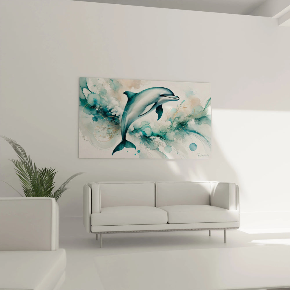 Ce tableau s’intègre parfaitement à un salon lumineux où il diffuse une énergie relaxante tout en stimulant l’inspiration. Installé dans une chambre, il favorise un climat de repos profond, propice à un sommeil réparateur. Il révèle aussi toute sa magie dans un bureau, où il stimule la créativité en rappelant la fluidité et la puissance de la nature aquatique.