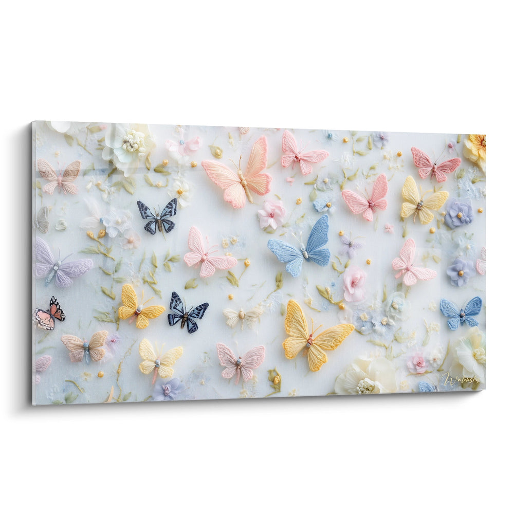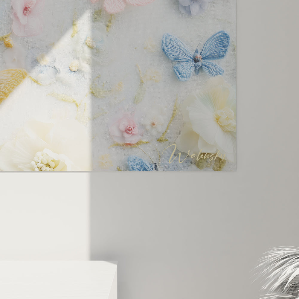 Imaginez un écrin suspendu entre rêve et nature, où les papillons s’animent sous vos yeux, légers comme une caresse d’été. Le Tableau Symphonie Lépidoptère - édition style crochet vous invite à un voyage sensoriel au cœur de la délicatesse et de l’élégance textile. Chaque vol de ces créatures aériennes évoque une métamorphose tout en douceur, sublimée par une broderie en relief qui magnifie leur grâce fragile.