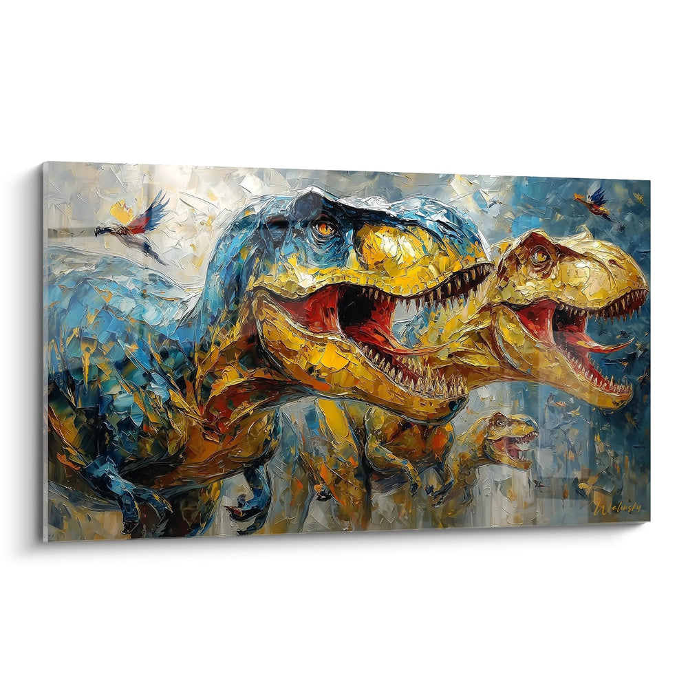 Tags : tableau-dinosaure, decoration-murale-t-rex, art-prehistorique, peinture-dinosaure-famille, tableau-expressionniste-dinosaure