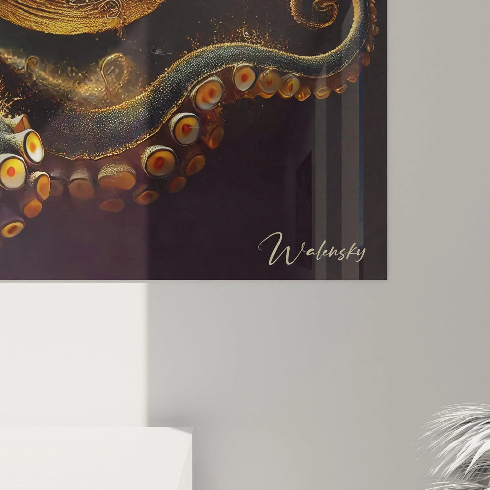 Laissez-vous envahir par la magie profonde des océans grâce au Tableau Tentacules d'Or - Édition Poulpe Animaux. Cette œuvre sublime incarne la rencontre parfaite entre la force mystérieuse des créatures marines et la délicatesse de leurs mouvements, offrant à votre intérieur une atmosphère à la fois puissante et raffinée.