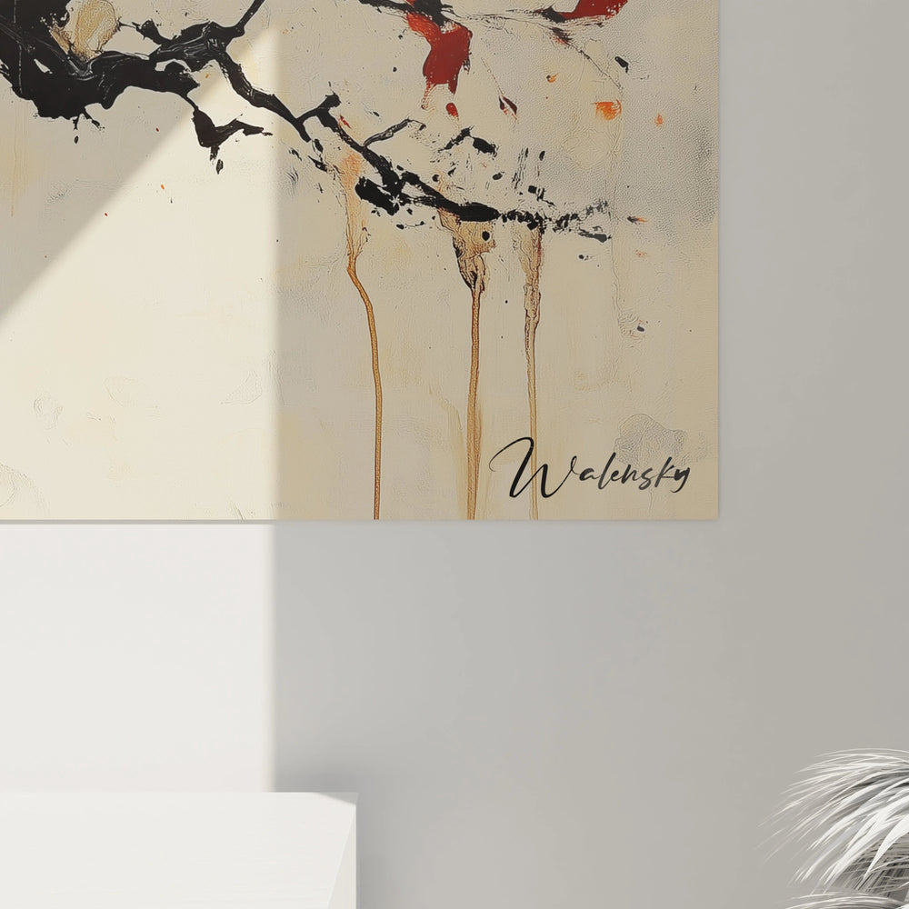 S’inspirant du wabi-sabi et des mouvements expressionnistes, ce tableau transcende les époques. La sobriété et l’imperfection assumée révèlent une beauté profonde, tandis que les couleurs chaudes rappellent les pigments des fresques antiques. C’est un véritable pont entre passé et présent, spontanéité et maîtrise.