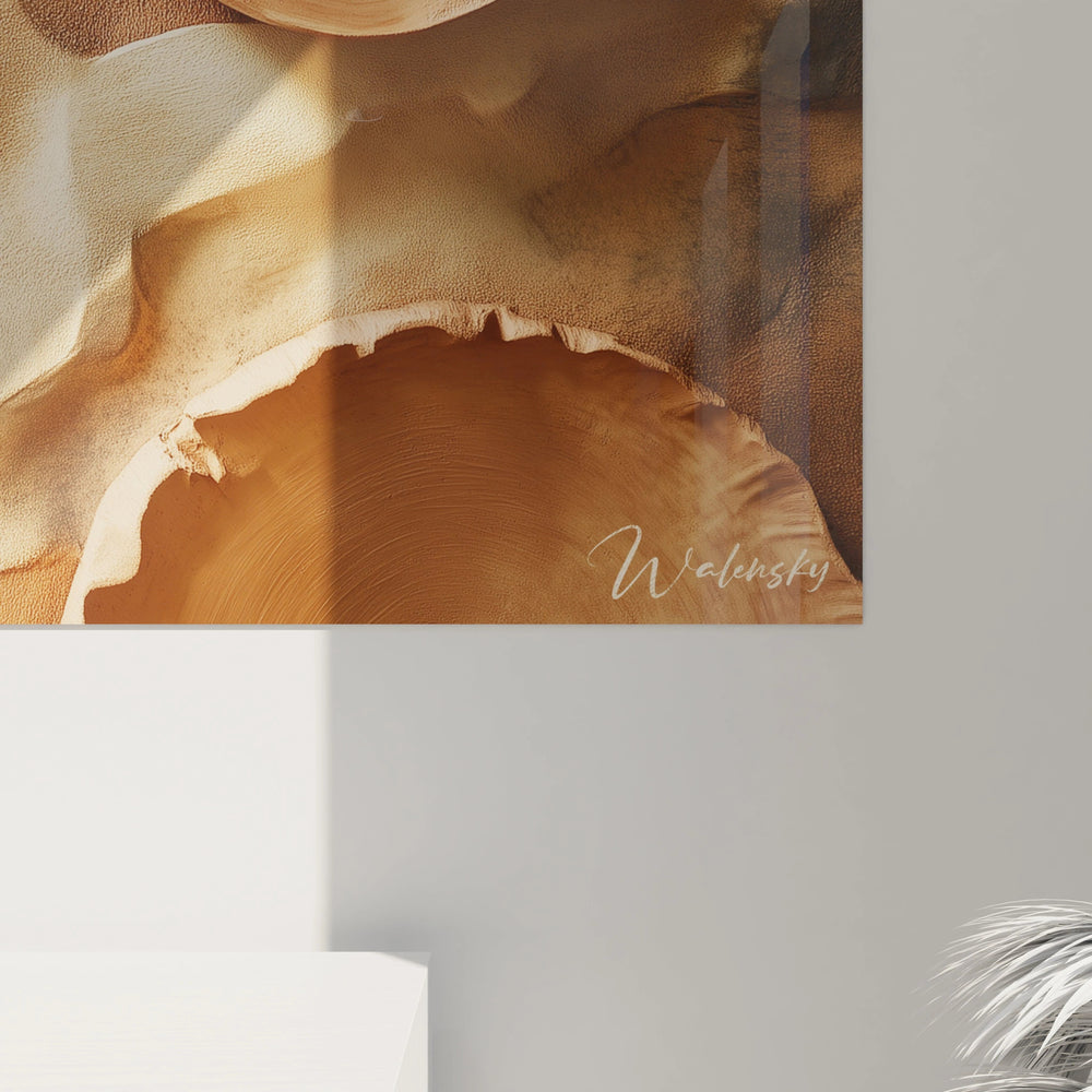 Cette Ćuvre incarne la fusion parfaite entre la matiĂšre et la lumiĂšre. Les formes arrondies et les textures singuliĂšres, Ă©voquant la terre cuite et le cuir patinĂ©, vous offrent une expĂ©rience presque palpable. Les nuances chaleureuses de marron, bronze et beige sable crĂ©ent une atmosphĂšre enveloppante, comme un doux souffle venu des paysages arides.