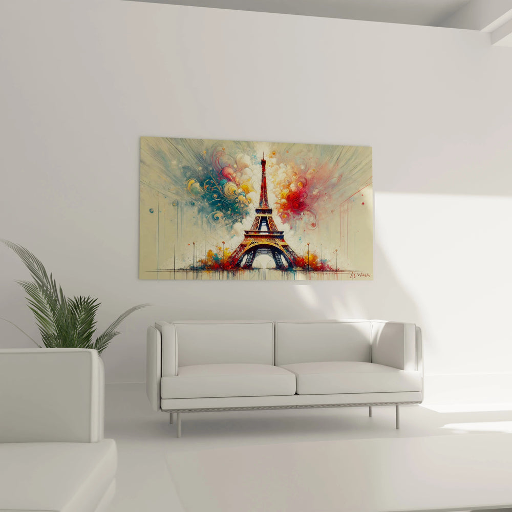 La surface texturée et les dégradés fluides donnent l’impression que la Tour Eiffel flotte au milieu d’un ciel en mouvement, presque palpable. Ce tableau raconte une histoire de passion, de voyage et d’émerveillement — une déclaration d’amour à la Ville Lumière qui transforme votre intérieur en véritable galerie d’art.