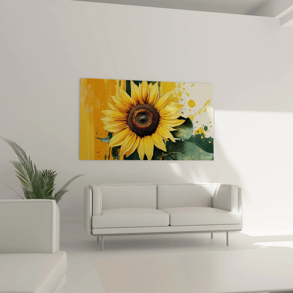 Ce tableau capture l’essence même du tournesol, ce symbole universel de joie, d’énergie et de renouveau. Chaque pétale semble vibrer sous la caresse d’un souffle d’air léger, tandis que les teintes chaudes de jaune lumineux et les profondeurs de verts contrastent avec finesse pour créer une harmonie visuelle parfaite. En contemplant cette œuvre, vous ressentirez la douceur et la vitalité d’une journée ensoleillée, propice au bien-être et à l’évasion.