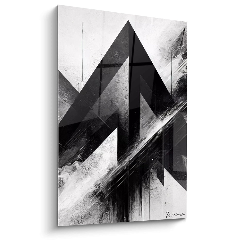 Imaginez-vous face à un paysage de lignes aiguisées, où chaque fragment se déploie comme la fracture d’une montagne imposante déchirant le calme ciel. Ce tableau est une invitation à contempler les tensions qui régissent notre monde : l’ordre contre le chaos, l’ombre contre la lumière, le calme contre l’énergie brute. Ses formes géométriques nettes ne sont pas seulement un hommage à une architecture intérieure, elles éveillent en vous une force tranquille, celle qui accompagne chaque défi et chaque conquête.