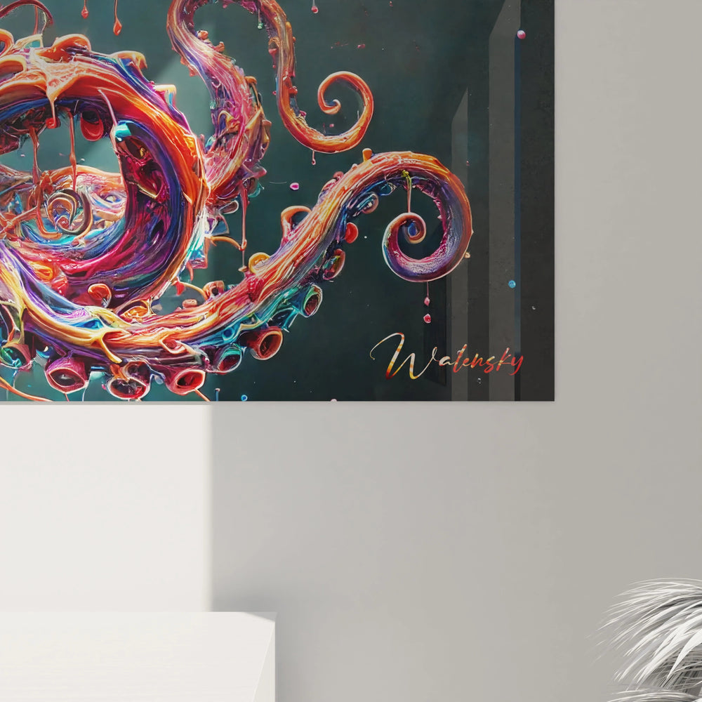 Chaque détail de cette œuvre raconte une histoire, celle d’une créature marine mythique traversant les eaux couleur d’arc-en-ciel, incarnation d’un monde où imagination et nature fusionnent. Offrez-vous cette échappée belle, où l’énergie mouvante du calamar apporte rythme et vie, éveillant la curiosité et stimulant l’esprit.