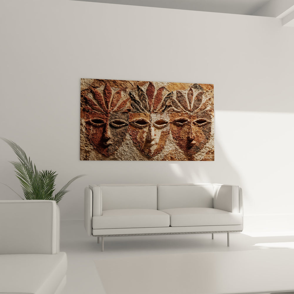 Laissez-vous séduire par les échos du passé et la richesse des émotions que suscite cette œuvre. Imaginez vos amis et votre famille captivés par la beauté de ce tableau, chacun trouvant résonance dans les visages sculptés, témoins d'histoires lointaines. Un de nos clients épris de décoration a partagé : « Ce tableau a métamorphosé mon espace. Chaque fois que je le regarde, il me relie à quelque chose de plus grand. »