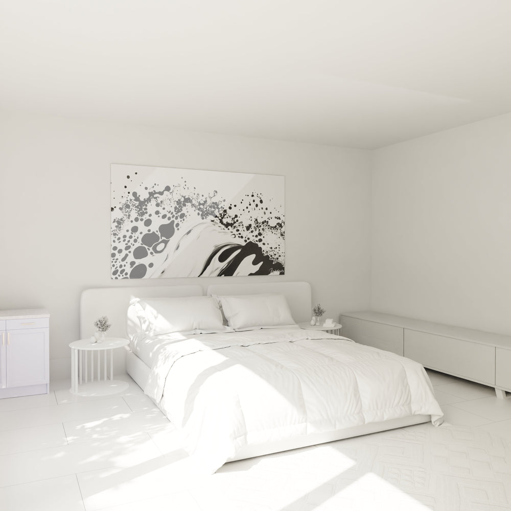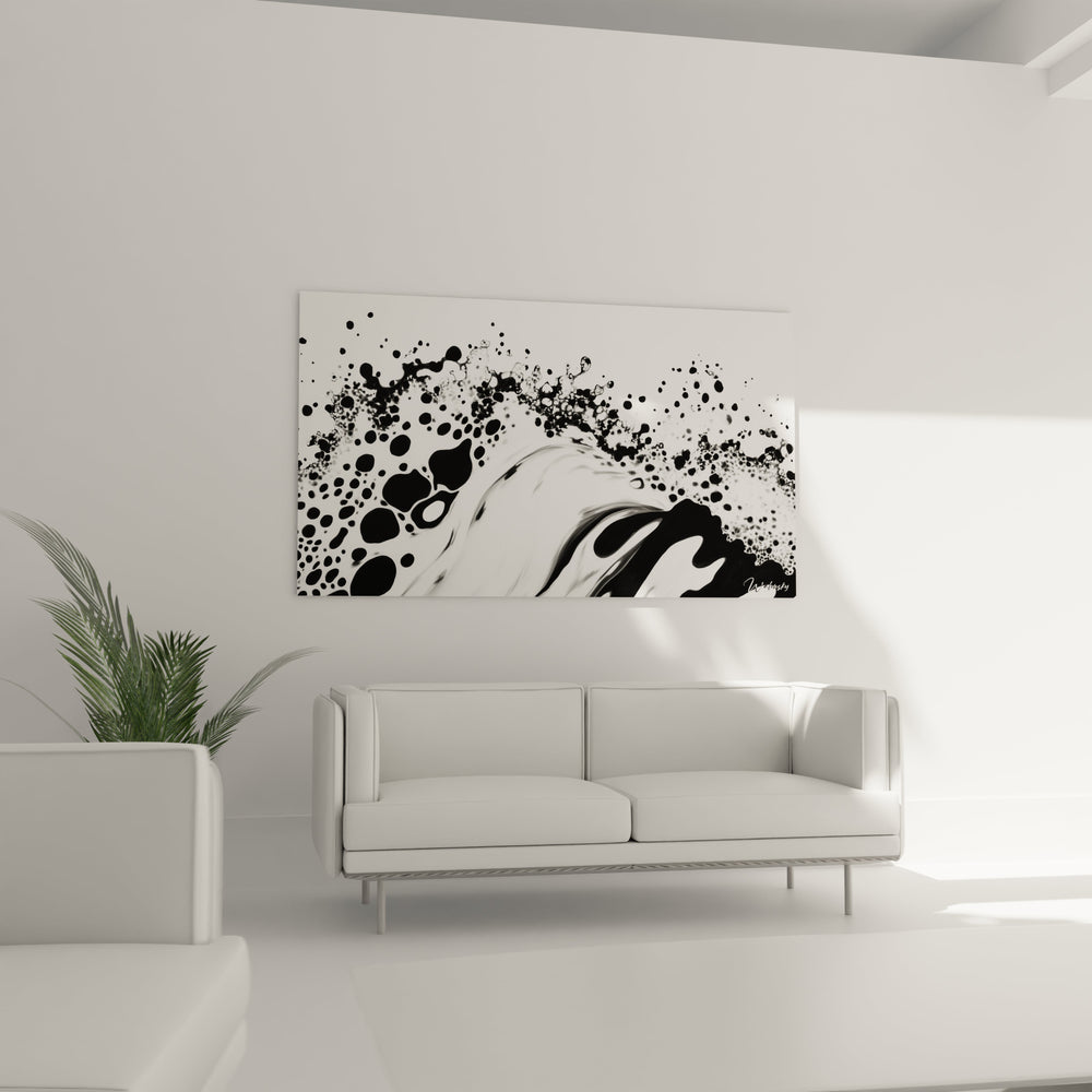 Ce tableau transcende le simple décor pour créer une ambiance où les émotions oscillent entre calme et intensité. Le noir et blanc ne sont pas qu’une palette : ils incarnent une conversation entre l’ombre et la lumière, où chaque éclaboussure raconte une histoire vibrante à explorer. Ainsi, vous ressentez à chaque regard la liberté d’interpréter ce souffle artistique à votre manière.