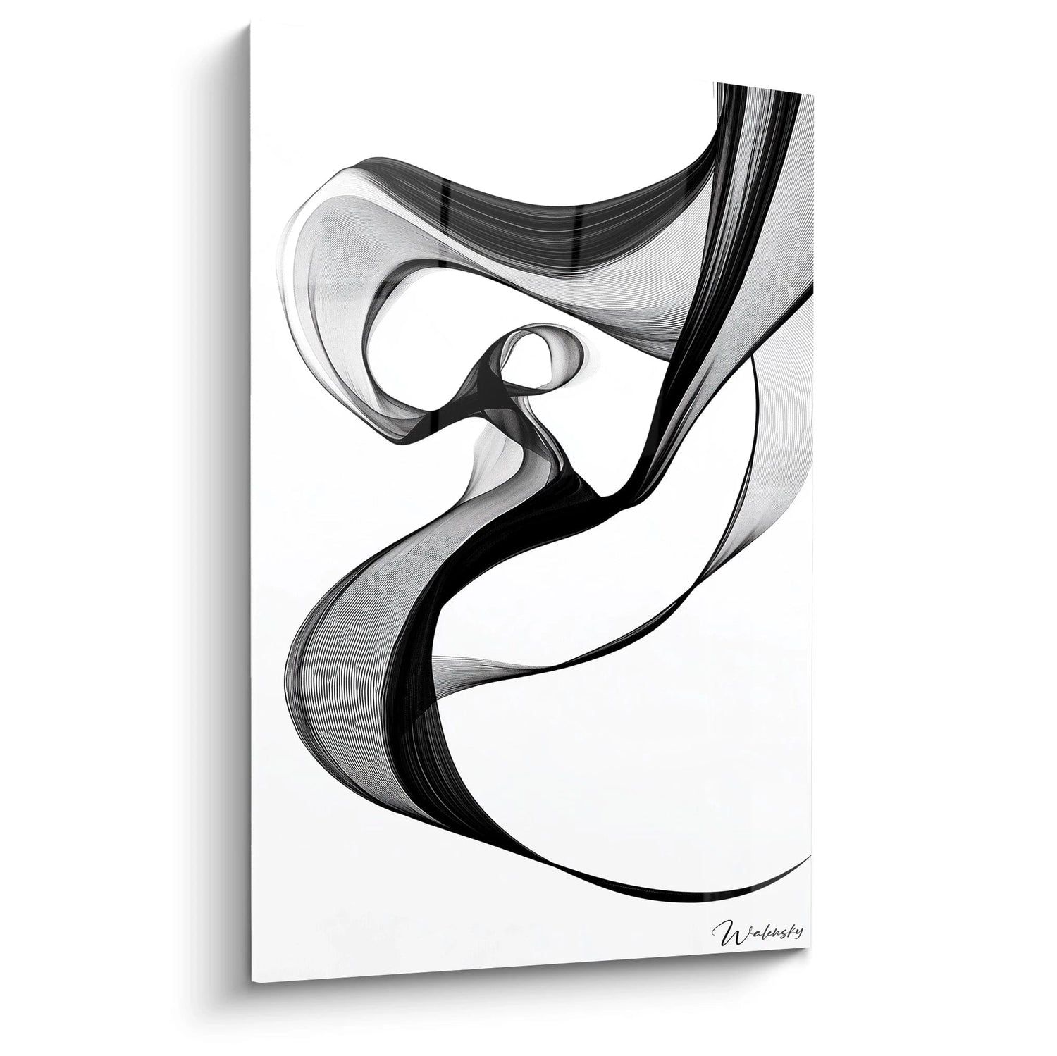 Ce tableau rayures noir et blanc captive immédiatement par son élégance minimaliste et sa composition dynamique. L'œuvre présente un entrelacement fluide de lignes ondulantes qui créent une impression de mouvement perpétuel. La première impression visuelle est celle d'une danse graphique parfaitement orchestrée, où chaque ligne contribue à l'effet d'ensemble tout en conservant sa propre trajectoire.