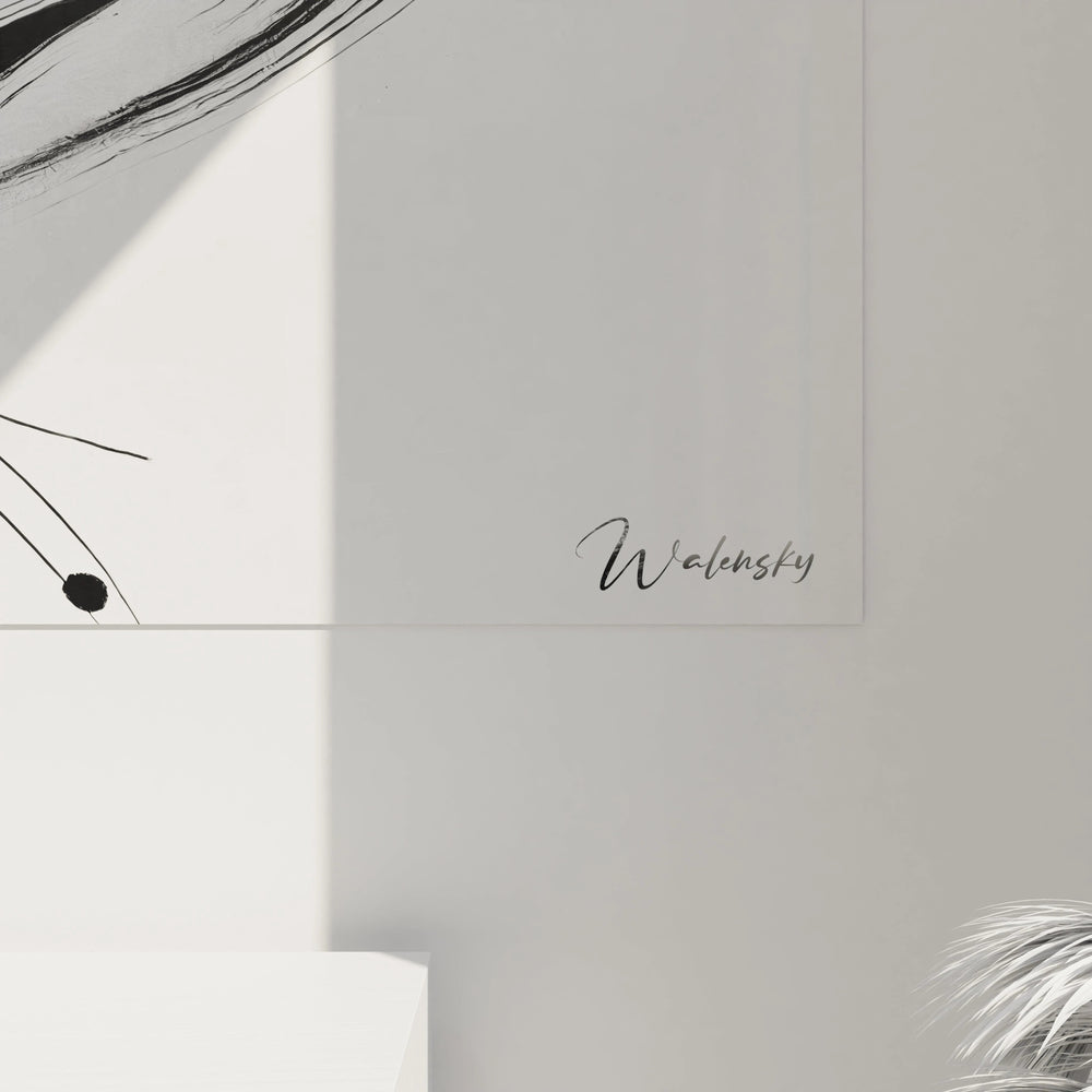 Ce tableau s’intègre parfaitement dans un espace moderne et épuré, où ses nuances de noir, blanc et gris s’harmonisent avec des éléments en bois foncé ou métal pour renforcer son impact visuel. Installez-le sur un mur clair afin que ses courbes et ses oscillations dansent à la lumière, et n’hésitez pas à jouer avec un éclairage directionnel pour magnifier chaque détail de ses traits puissants.