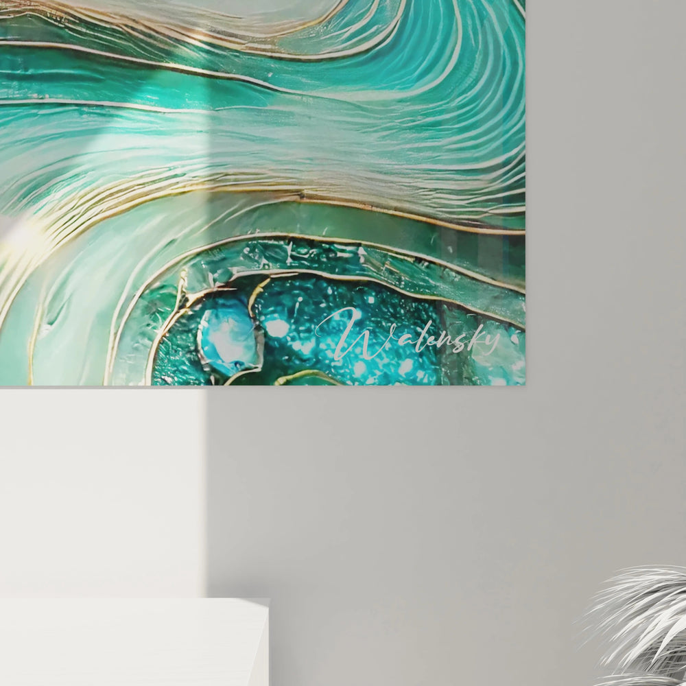 Ce tableau incarne la fluidité infinie des rivières et la douceur des vagues qui caressent la rive. Chaque nuance de bleu turquoise mêlée à des touches de vert vibrant et d’or délicat évoque la fraîcheur pure de l’eau, tandis que la résine époxy apporte une brillance cristalline faisant scintiller la pièce à la lumière naturelle. Imaginez la sérénité que cette œuvre ajoutera à votre salon ou bureau, comme une invitation silencieuse à ralentir, respirer, et se connecter au calme profond de la nature.