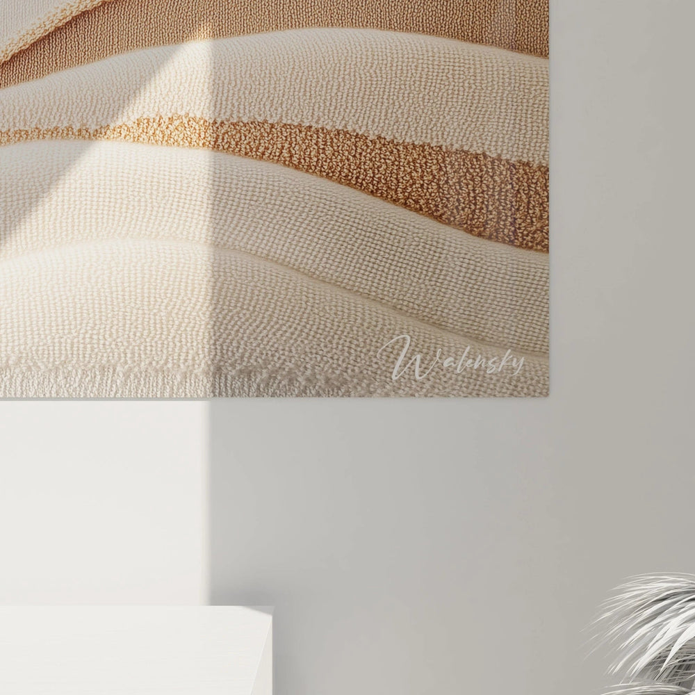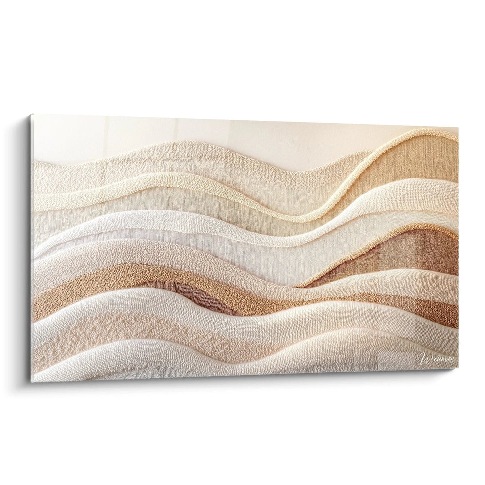 Imaginez la douceur d’une plage baignée par la lumière dorée du soleil couchant, où le sable dessine des ondulations délicates qui éveillent vos sens. C’est précisément cette magie que le Tableau Vagues Sablées - édition style crochet capture avec raffinement, mêlant l’art du textile ancestral à la pureté des formes naturelles.