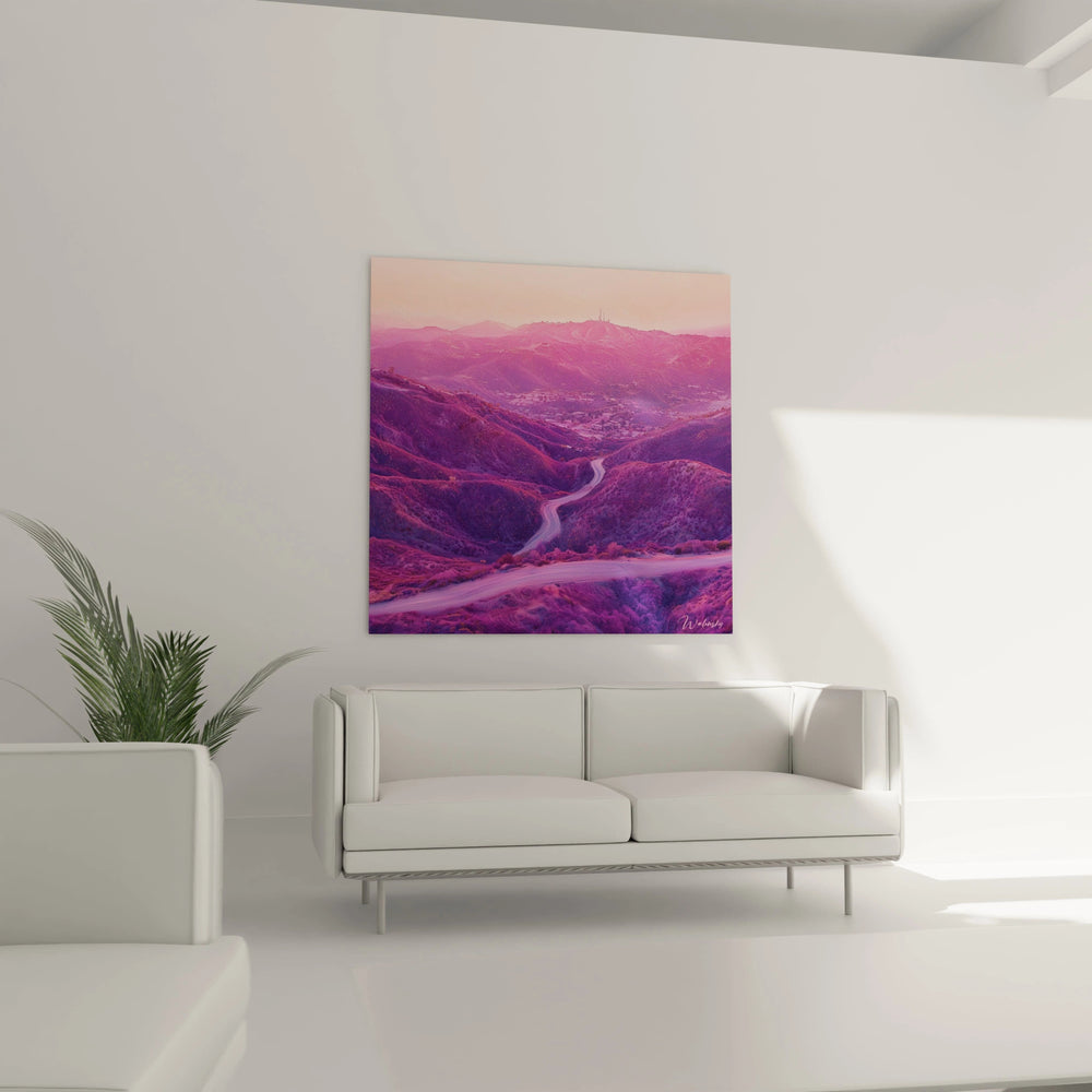 Cette œuvre contemporaine sublime la montagne, non pas dans ses codes traditionnels, mais à travers une palette audacieuse mêlant rose, violet et beige. Ces couleurs vibrantes et subtiles donnent vie à des reliefs qui semblent flotter entre rêve et réalité, apportant une aura apaisante et sophistiquée à votre espace. Chaque détail révèle une texture qui évoque à la fois la rugosité des rochers et la douceur du soir tombant.