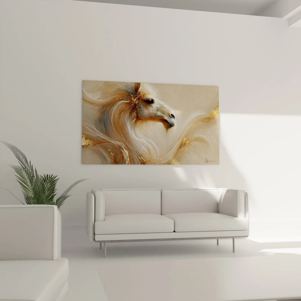 Ce tableau est bien plus qu’une simple œuvre décorative. Il est la manifestation poétique d’un équilibre subtil entre robustesse et grâce. Les courbes ondulantes des lignes, associées aux nuances chaleureuses d’or, de beige et de blanc, évoquent un mouvement léger, comme si le vent emportait avec lui vos pensées pour vous offrir un moment de pure quiétude. En accueillant ce tableau chez vous, vous installez une ambiance apaisante, propice à la rêverie et à la contemplation.