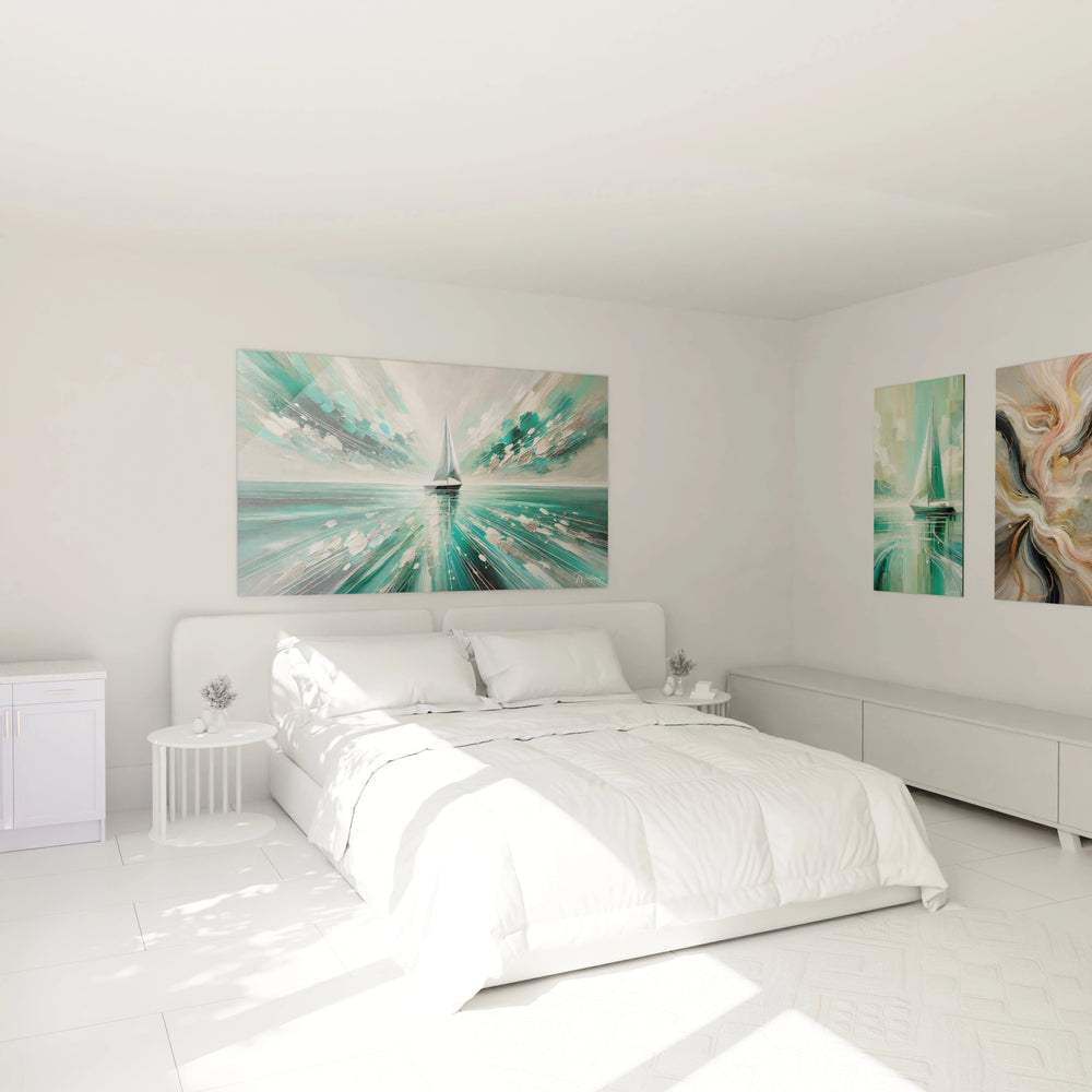 Imaginez un souffle salé caressant votre peau, la mer scintillant sous les rayons changeants du soleil, et ce moment puissant où le vent s’engouffre dans les voiles, propulsant un bateau vers l’infini. Le Tableau Vents de Liberté - Edition Bateau Abstrait transforme ce ressenti en une œuvre d’art unique, qui invite à la fois au rêve et à la contemplation.