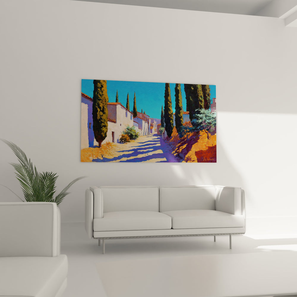 Commandez dès maintenant votre Tableau Village Méditerranéen avec Cyprès et transformez votre maison en un véritable sanctuaire de beauté. Ne tardez pas, les stocks sont limités !