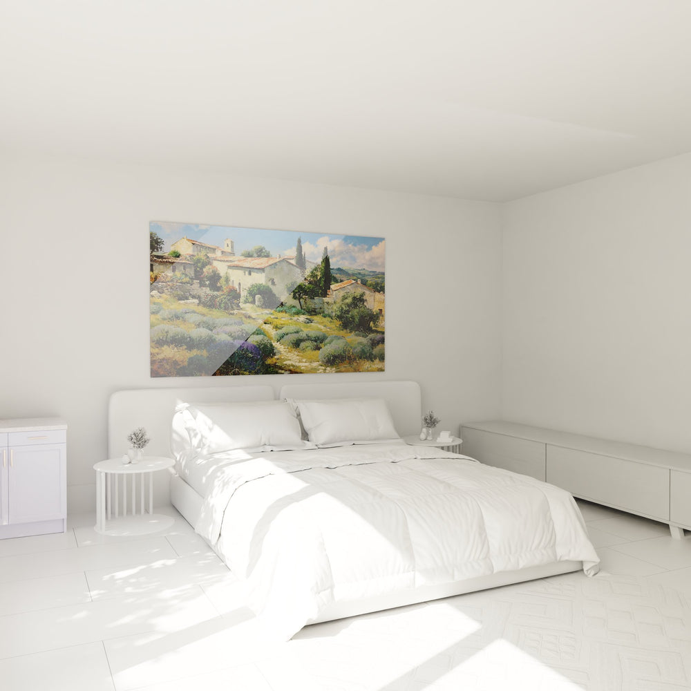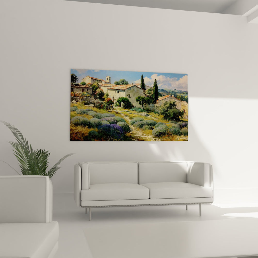 Tags : village provençal, mas traditionnel, champs lavande, cyprès provence, décoration campagne, paysage méditerranéen, art mural authentique