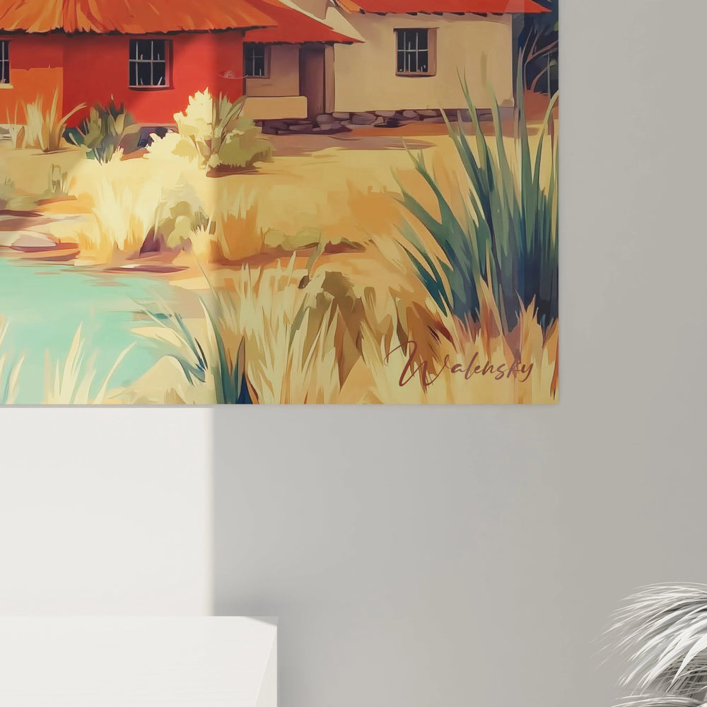 Ce tableau ne se contente pas de décorer vos murs; il raconte une histoire. Inspiré par les villages traditionnels où les toits de terre rouge fusionnent avec les nuances de la nature environnante, cette œuvre évoque la beauté inégalée de la vie en harmonie avec la terre. La palette de couleurs chaudes et terrestres insufflera une énergie vibrante à votre intérieur, tout en créant un espace accueillant où il fait bon se retrouver.