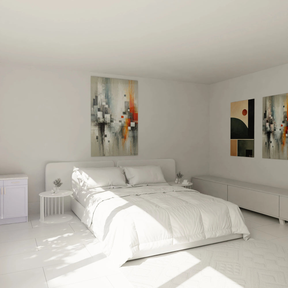 Ce tableau ne se contente pas de décorer vos murs, il anime votre espace. Laissez-vous transporter par le jeu de contrastes qui éveille vos sens : la densité tangible des formes géométriques, la chaleur subtile des touches colorées et la douceur visuelle des lignes horizontales et verticales. Installez-le dans votre salon ou votre bureau, et ressentez cette invitation au calme méditatif mêlé à la vitalité urbaine.