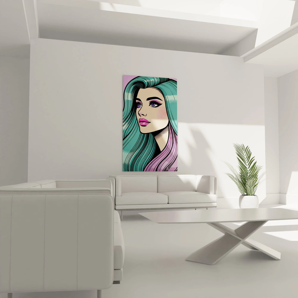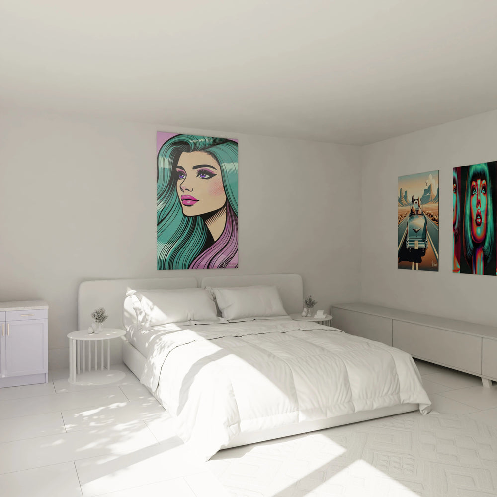 Chaque coup de pinceau de cette création évoque la grâce des icônes vintage, mêlant modernité et nostalgie avec une finesse rare. Les teintes pastel délicates se marient à des notes discrètes de violet et de rose, insufflant une douceur envoûtante et une profondeur lumineuse qui captent le regard sans effort. En posant les yeux sur ce tableau, vous ressentez cette énergie féminine pleine de confiance, empreinte d’un souffle de liberté et de créativité intemporelle.