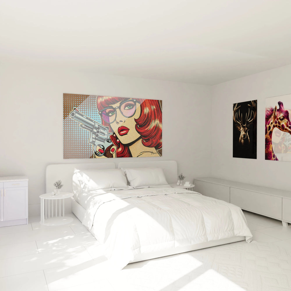 Faites le choix d’un tableau qui parle, un tableau qui inspire. Ajoutez dès maintenant le Tableau Regard Revolver - Édition Rétro à votre collection et transformez votre intérieur en une véritable galerie d’émotions.
