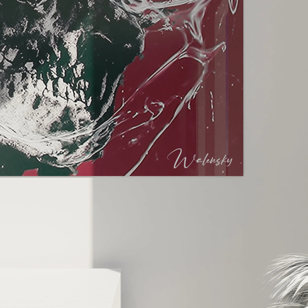 Cette œuvre nécessite un éclairage LED neutre pour révéler pleinement la richesse de ses nuances chromatiques. L'intensité dramatique du tableau visage bordeaux s'épanouit particulièrement dans un environnement aux tonalités neutres : murs blancs, gris perle ou beige chaud. Pour optimiser son impact visuel, privilégiez un accrochage à hauteur des yeux dans un espace de passage où les jeux de lumière naturelle peuvent interagir avec les reflets des lèvres. Cette décoration murale visage contemporain s'harmonise parfaitement avec :